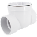 The S-640 backwater PVC valve is in solvent x solvent configuration. The stepped body design places the inlet socket-end higher than the outlet, promoting the correct drop-per-foot and improving flow efficiency. The lid and flapper are equipped with o-rings assuring a positive seal-out of sewer gasses. Designed for horizontally-installed, low pressure gravity-flow DWV systems only, not suitable for upward-flow or pressurized systems.